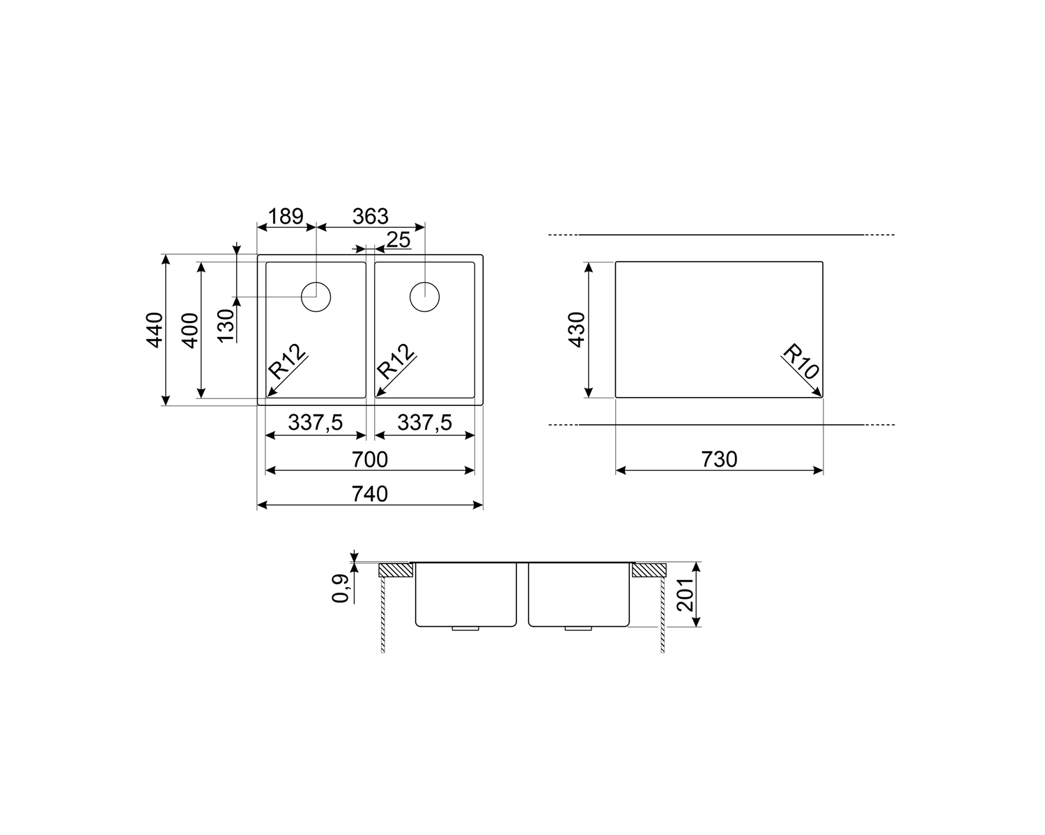 Мойка кухонная SMEG VR12S3434 740х440х201 мм (нерж. сталь) нерж. сталь матовая