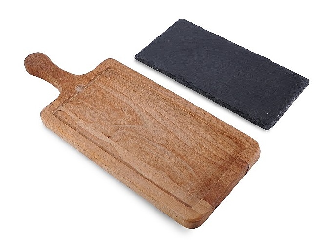 Блюдо для подачи MGprof 73612 380х150 мм на дерев. подставке с ручкой