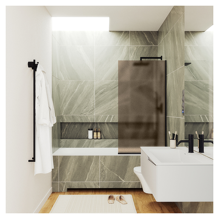 Шторка на ванну MaybahGlass MGV-249-6у 30х140 см, бронза матовая, черный