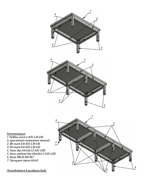 Подтоварник Техно-ТТ ПТ-2006/3 используется на предприятиях общественного питания и торговли для хранения сухих продуктов, посуды, различного кухонного инвентаря и оборудования. Низкая посадка и дополнительная пара ножек обеспечивают повышенную устойчивость. Каркас выполнен из трубы 40х40 мм из нержавеющей стали AISI 430, столешница - из нержавеющей стали AISI 430. Поставляется в разобранном виде. Дополнительные характеристики:
