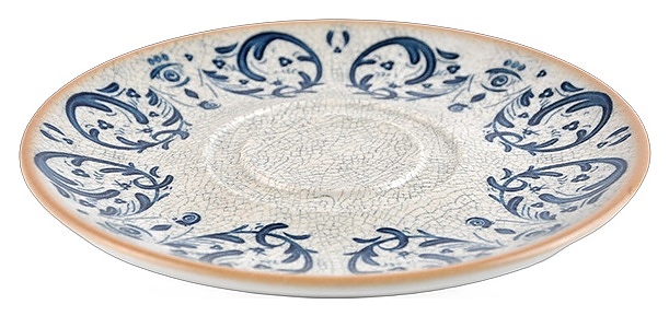 Подстановочная тарелка Bonna Viento S-MT-VIEGRM19KKT используется с салатником FUTGRM16KS в ресторанах, кафе, на других предприятиях общественного питания и в домашних условиях. Модель круглой формы оснащена плавно расширенным кверху бортом. Изделие выполнено из высококачественного белого фарфора с декоративной текстурой поверхности в виде трещинок, светло-коричневым кантом по кромке и средиземноморским орнаментом в синих тонах. Цена указана за 1 шт. Особенности: