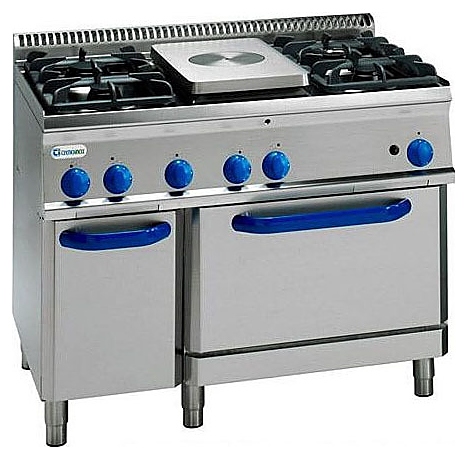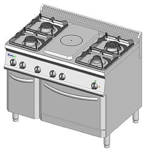 Газовая плита Tecnoinox PFP105GG7 серии Tecno70 предназначена для приготовления первых, вторых, третьих блюд в наплитной посуде и выпечки мелкоштучных кулинарных изделий на предприятиях общественного питания и торговли. В нейтральном шкафу можно хранить посуду, кухонные принадлежности и сухие пищевые продукты. Модель оснащена горелками, возможно использовать центр гладкой рабочей поверхности как открытое пламя. Корпус изготовлен из нержавеющей стали AISI 304, гладкая рабочая поверхность и газовые горелки - из эмалированного чугуна. Оборудование может быть расположено у стены или как центральный остров. В комплект поставки входят хромированная решетка и сменные насадки для газа. Особенности: