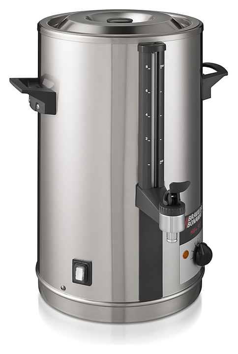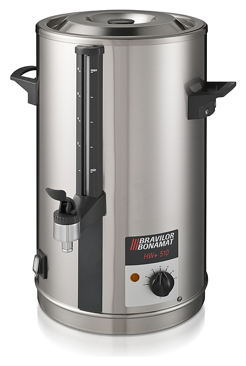Кипятильник Bravilor Bonamat HW+520 используется на предприятиях общественного питания и торговли для приготовления горячей воды, предназначенной для супа, каши, чая и других горячих напитков. Модель оснащена "не капающим" краном, быстрым нагревом воды до требуемой температуры, лампочкой-индикатором, показывающим, что вода нагрелась, защитой от сухого хода, герметичным клапаном и термостатом. Корпус имеет двойные стенки. Опции (заказываются отдельно):
