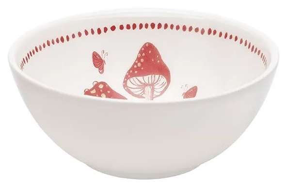 Набор посуды Oxford COGUMELOS 141021 CJ03-5961 используется на предприятиях общественного питания и торговли, а также в домашних условиях для подачи завтрака, закусок, супов и других блюд. Набор состоит из 3 предметов кругло ориентированной формы: кружки с ручкой, мелкой тарелки и глубокой миски. Изделия выполнены из высококачественной керамики с глазурованной поверхностью и декором паттернами с мухоморами в стиле наивной акварели в гармоничной комбинации белого, красного и оранжевого тонов. Особенности: