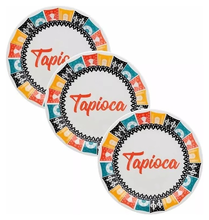 Мелкая тарелка Oxford BAZAR TAPIOCA 75406 J084-6811 используется на предприятиях общественного питания и торговли, а также в домашних условиях для подачи национального бразильского блюда тапиоки. Коллекция разработана для подачи декорирована яркими паттернами с элементами культуры и быта провинциальных регионов Бразилии. Изделие выполнено из высококачественной керамики с глянцевой глазурованной поверхностью к комбинации оранжевого, желтого, бирюзового и черного тонов. Цена указана за 1 шт. Особенности: