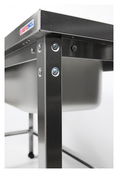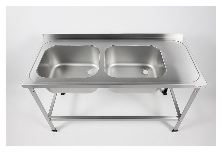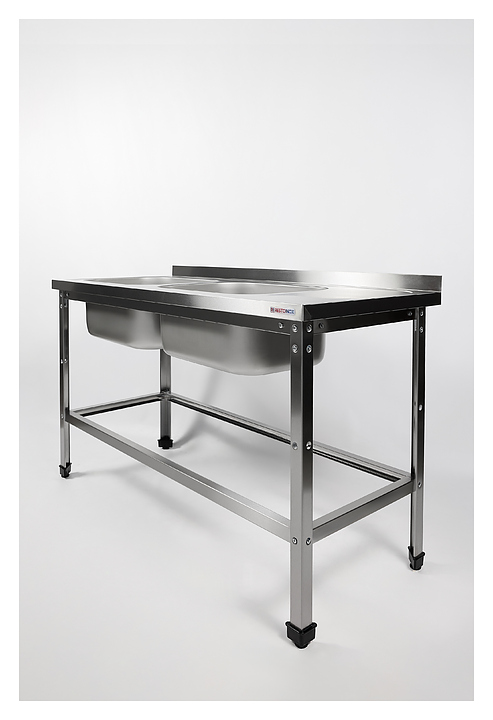 Моечная ванна Restoinox ВМЦ-2/15/7-БОЛ-ЭН предназначена для мытья кухонного инвентаря на предприятиях общественного питания. Модель оснащена 2 раковинами слева, площадкой под смеситель, задним бортом и выпуском. Цельнотянутые раковины выполнены из высококачественной нержавеющей стали марки AISI 304, каркас и обвязка – из углового профиля из нержавеющей стали марки AISI 430 с пуклевкой, подпятники опор – из прочного пластика. Изделие поставляется в разобранном виде. Особенности: