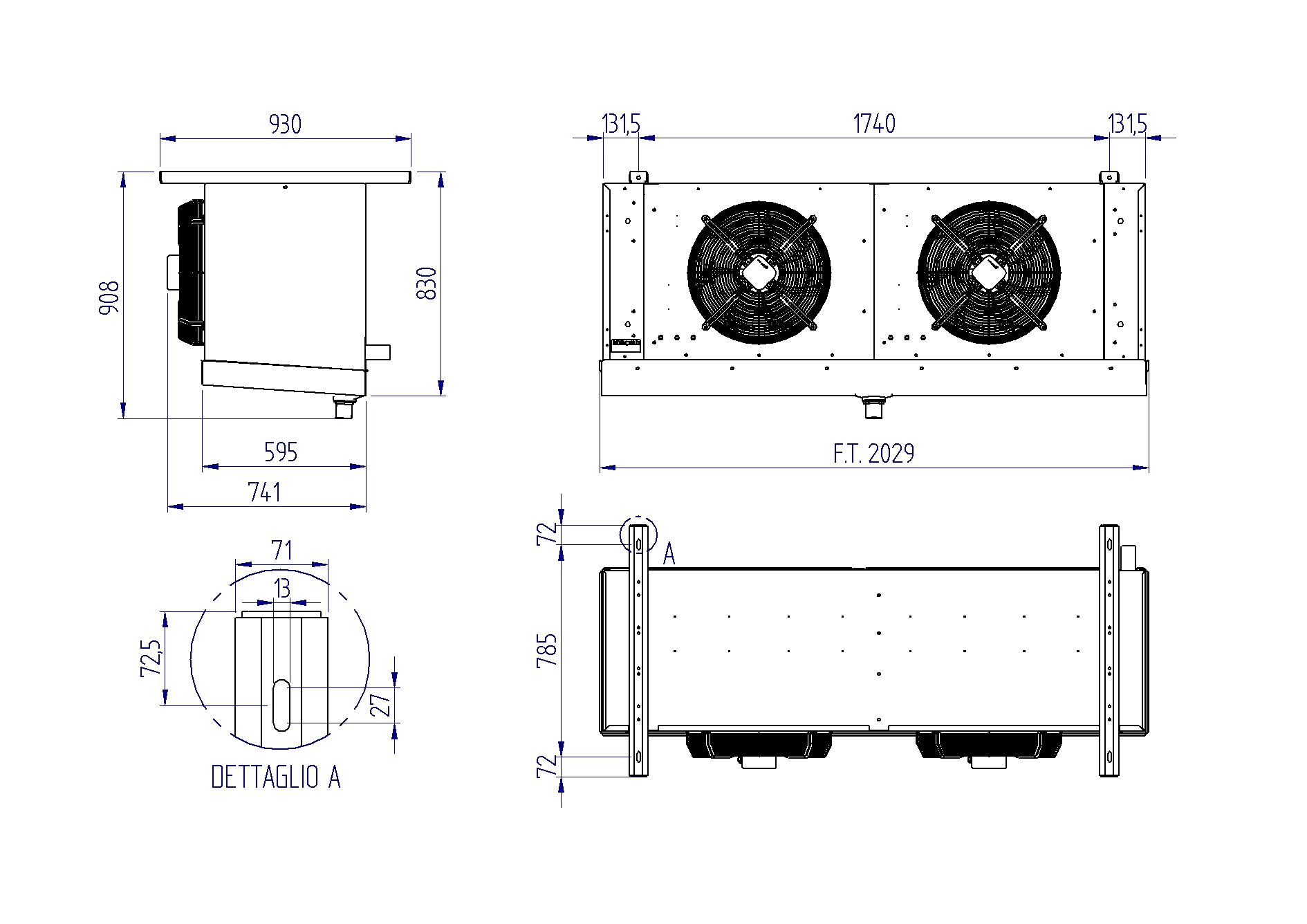 Воздухоохладитель Rivacold RCBR2500810 используется на предприятиях пищевой промышленности, общественного питания и торговли для поддержания оптимальной температуры в холодильных камерах, предназначенных для хранения замороженной продукции. Модель состоит из корпуса, теплообменника, 2 вентиляторов с внешними роторами и защитными решетками. Корпус выполнен из алюминиевых панелей, теплообменник – из медных рифленых трубок и алюминиевых ламелей, винты, шайбы и гайки – из нержавеющей стали.