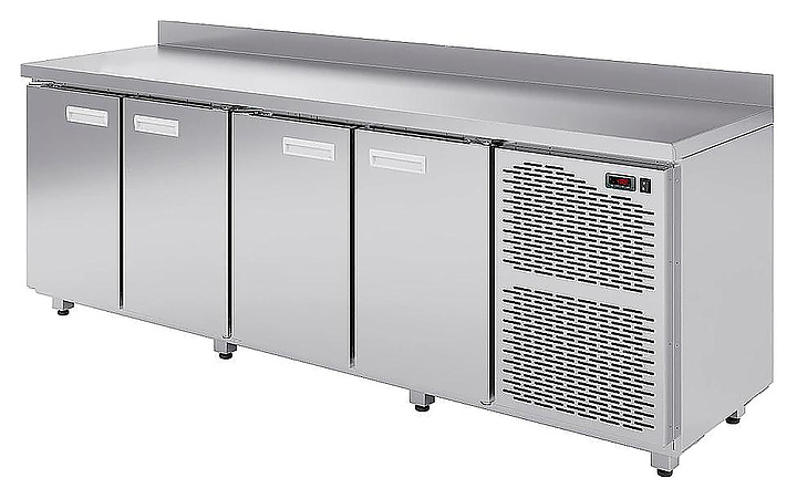 Морозильный стол KAYMAN KСМ-4314/70 предназначен для охлаждения, хранения и обработки пищевых продуктов в ресторанах, барах, кафе, столовых, на профессиональных кухнях и пищевых производствах. На прочной столешнице можно резать, раскатывать и отбивать полуфабрикаты. Модель оснащена 5 ящиками и 2 дверьми. Изделие выполнено из высококачественной нержавеющей стали, отличающейся прочностью и долговечностью. Особенности: