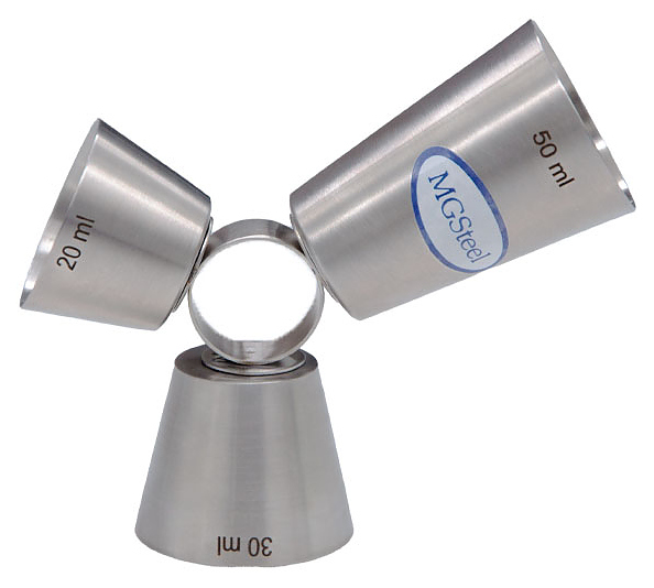 Джиггер MGsteel 73887 используется на предприятиях общественного питания для контроля количества ингредиентов, добавляемых в алкогольные коктейли во время их приготовления. Модель состоит из 3 стаканчиков на кольце. Изделие выполнено из нержавеющей стали, которая отличается прочностью, долговечностью и безопасностью, не изменяет вкусовые качества, запах и цвет пищи, так как не вступает в реакцию с ее компонентами. Дополнительные характеристики: