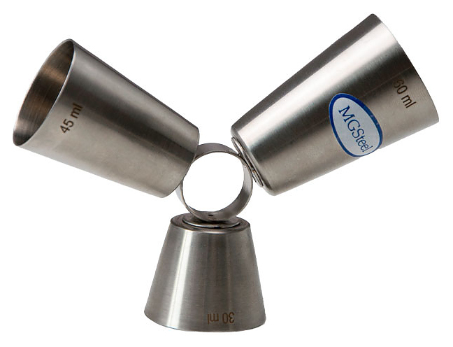 Джиггер MGsteel 73886 используется на предприятиях общественного питания для контроля количества ингредиентов, добавляемых в алкогольные коктейли во время их приготовления. Модель состоит из 3 стаканчиков на кольце. Изделие выполнено из нержавеющей стали, которая отличается прочностью, долговечностью и безопасностью, не изменяет вкусовые качества, запах и цвет пищи, так как не вступает в реакцию с ее компонентами. Дополнительные характеристики: