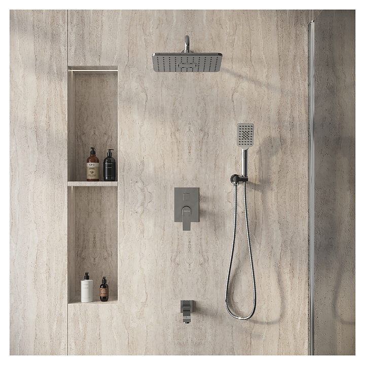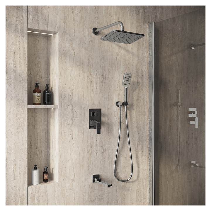 Встраиваемая душевая система Grossman Classic 501.K35.04.100 предназначена для использования в ванных помещениях для подачи горячей и холодной воды. Модель оснащена складным поворотным изливом для наполнения ванны, прямоугольным верхним тропическим душем с изменяемым углом, прямоугольным трехрежимным ручным душем, душевым шлангом в двойной оплетке с защитой от перекручивания. Изделие выполнено из латуни, отличающейся прочностью, долговечностью и устойчивостью к перепадам температур, верхний душ, стойка и шланг - из нержавеющей стали, ручкая лейка - из ABS-пластика. В комплект поставки входят крепления, эксцентрики, душевой шланг, душевая лейка, аэратор, вентиль, держатель для душа и переключатель потоков. Особенности: