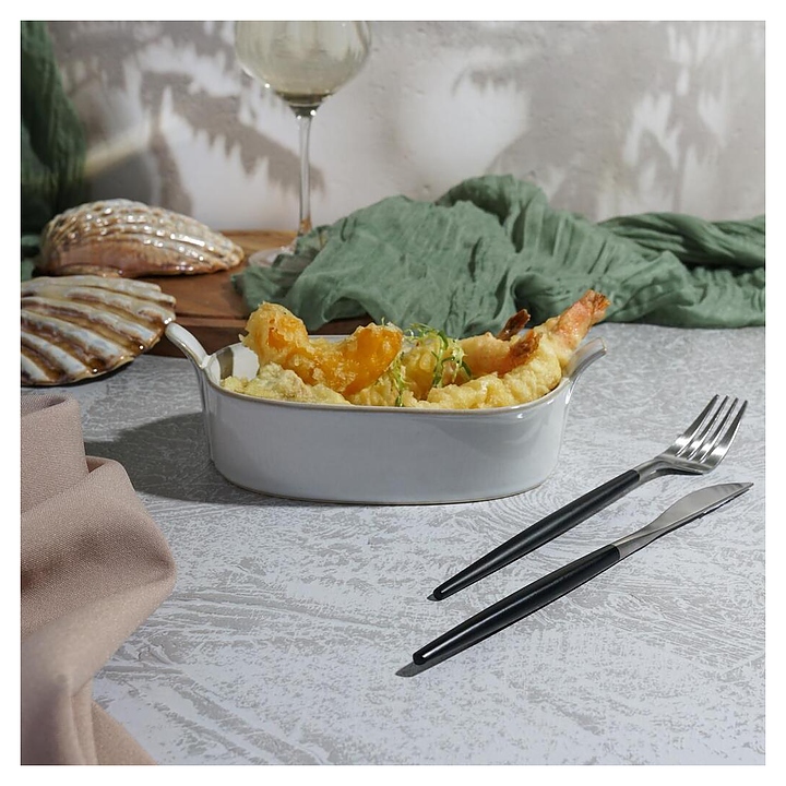 Блюдо сервировочное P.L. Proff Cuisine Gray Oval Bucket Frutti di Mare QB23165004 400 мл 19х11,5 см h4 см с ручками (керамика)