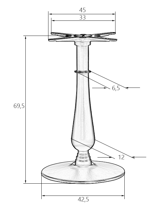 Подстолье DOBRIN 5013-9-LMS ROLAND используется в качестве опоры для столешницы обеденного столика в кафе, ресторанах и на других предприятиях общественного питания и торговли. Изделие выполнено из металла. Дополнительные характеристики: