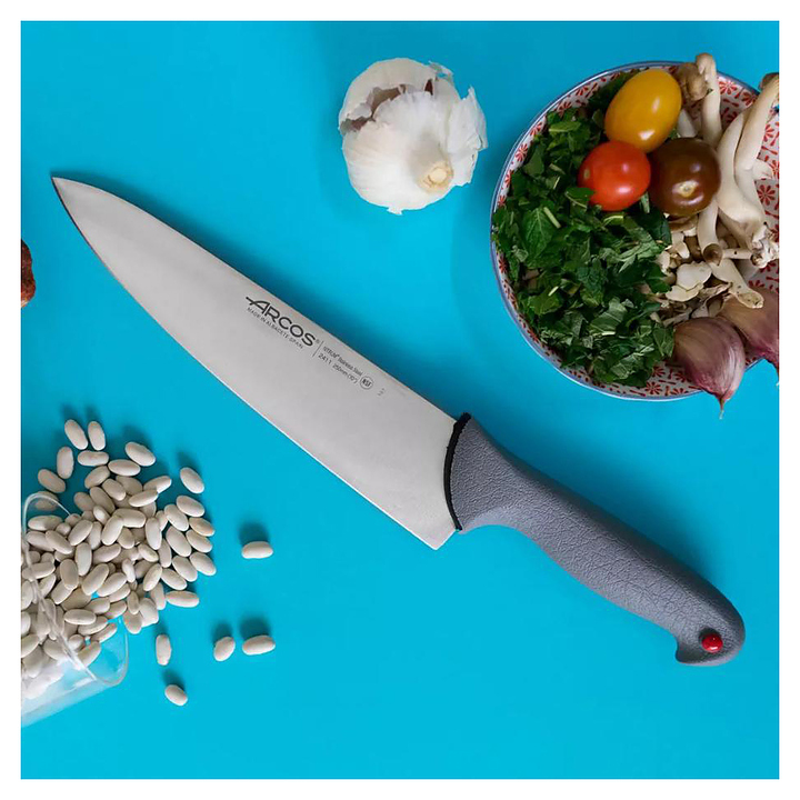 Поварской нож Arcos Colour-prof 2411 используется на предприятиях общественного питания для приготовления блюд. Рукоятка изготовлена из полипропилена, отличающегося устойчивостью к воздействию влаги, слабых щелочных и кислотных растворов, высокой температуры и коррозии, долгое время сохраняют свою целостность и внешний вид. Клинок выполнен из стали NITRUM, устойчивой к коррозии и долговечной, длительно сохраняющей остроту режущей кромки и первоначальный внешний вид во время всего периода эксплуатации. Особенности: