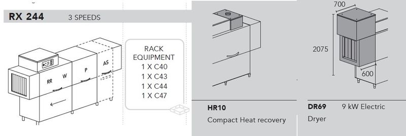 Туннельная посудомоечная машина Dihr RX 244 DX+DDE+DR69+HR10 деление на 2 части