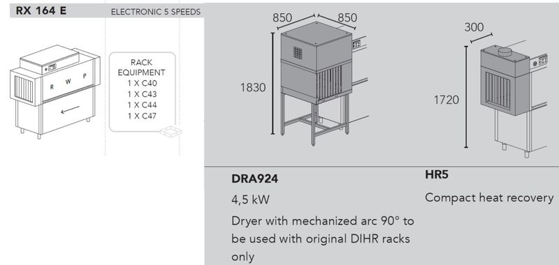 Туннельная посудомоечная машина Dihr RX 164 E DX+DRA924+HR5+DDE деление на 2 части