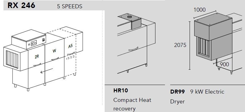 Туннельная посудомоечная машина Dihr RX 246 DX+DDE+HR10+DR99+SAN деление на 2 части