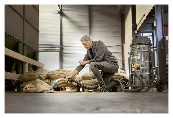 Промышленный пылесос Karcher IVM 40/24-2 H ACD предназначен для сбора небольших объемов мелких и крупных твердых горючих отходов промышленного производства в невзрывоопасных зонах. Модель оснащена 2 моторами, которые могут включаться по отдельности, звездчатым PTFE фильтром для пыли класса М, сертифицированным фильтром класса пыли Н и большими колесами для транспортировки. Корпус фильтра и контейнер выполнены из кислотостойкой нержавеющей стали, шасси - из прочной стали. Особенности: