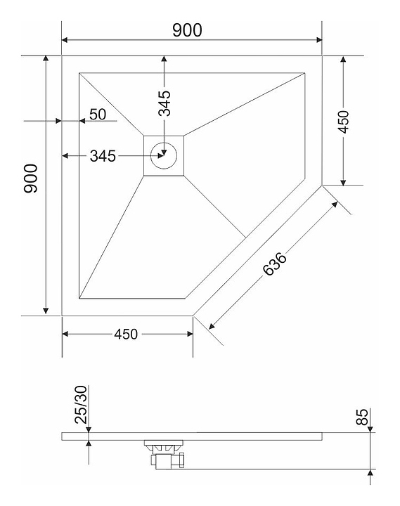 Поддон душевой Grossman Strong GR-S19090D 90х90 см, камень
