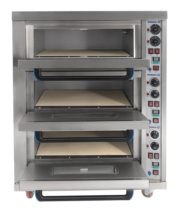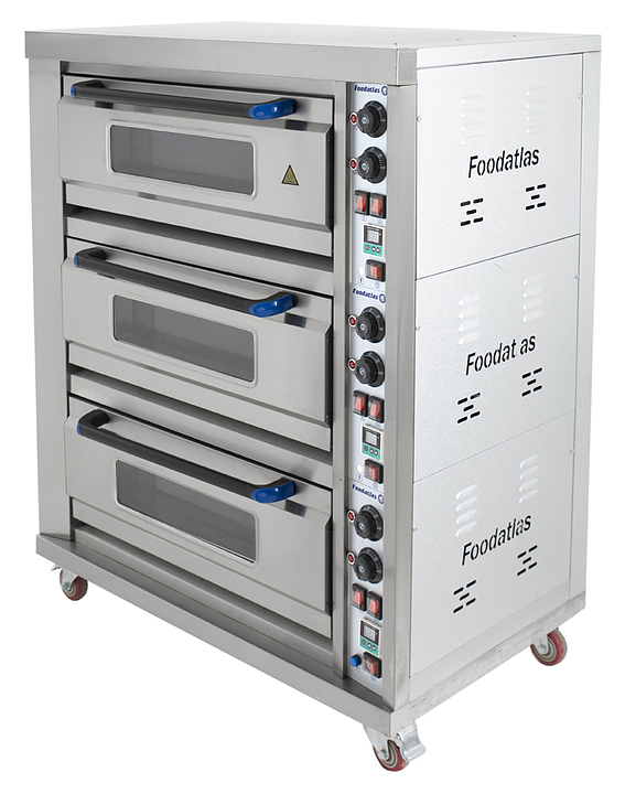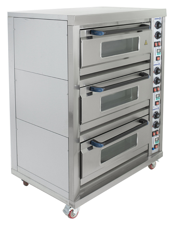 Хлебопекарная печь Foodatlas HEO-33S используется на предприятиях общественного питания и торговли для выпечки широкого ассортимента хлебобулочных и кондитерских изделий: хлеба пшеничного, ржано-пшеничного формового и подового, хлебобулочной продукции, мучных кондитерских изделий, просфор, куличей и приготовления мясных, рыбных, овощных и других блюд. Модель оснащена 3 камерами с каменными подами и дверцами со смотровыми окнами. Корпус выполнен из нержавеющей стали. Противни для выпечки в комплект поставки не входят и приобретаются отдельно. Особенности: