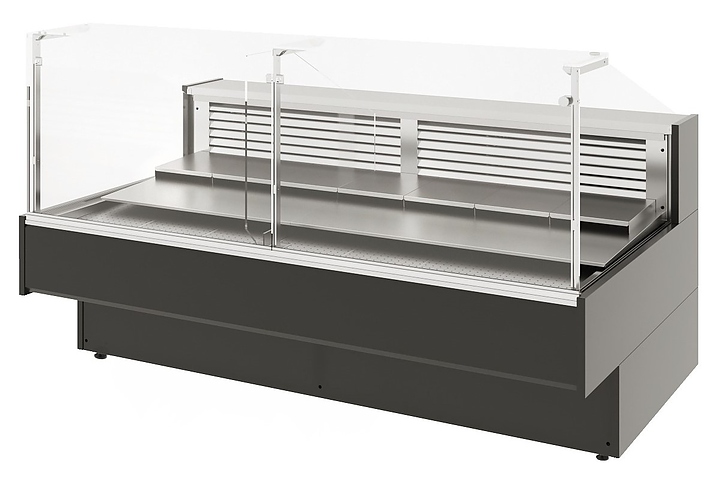 Внешняя угловая холодильная витрина Lida Cristal SU (1400х1400x1250 мм) используется на предприятиях общественного питания и торговли для кратковременного хранения и предпродажной демонстрации мяса и мясной продукции. Модель оснащена электронным блоком управления, откидным фронтальным прямым стеклом и верхней предметной полкой. Каркас выполнен из трубы квадратного сечения, теплоизоляция - из пенополиуретана высокой плотности, рабочая поверхность продавца, внутренние поверхности и полки для выкладки товара - из нержавеющей стали, ночные шторки - из оргстекла. Комплектация: