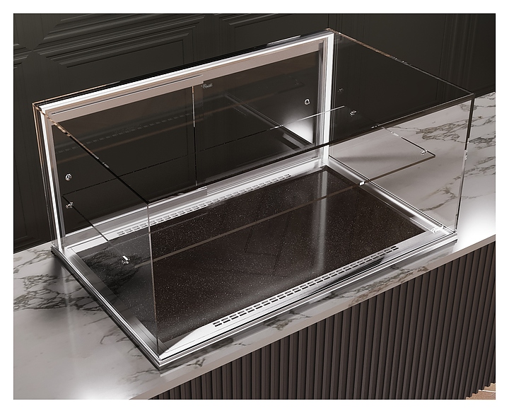 Встраиваемая кондитерская витрина Finist Glassier812 Stone Gst812-14/50/5 предназначена для кратковременного хранения и предпродажной демонстрации десертов и кондитерских изделий на предприятиях общественного питания и торговли. Модель может монтироваться в столешницу из любого материала, что позволяет легко интегрировать в любой интерьер. Витрина оснащена светодиодной подсветкой и полкой. Каркас выполнен из зеркальной нержавеющей стали, купол - из просветленного стекла, зона выкладки - из искусственного камня, который отличается прочностью, долговечностью, гигиеничностью, легко очищается и не впитывает запахи. Особенности: