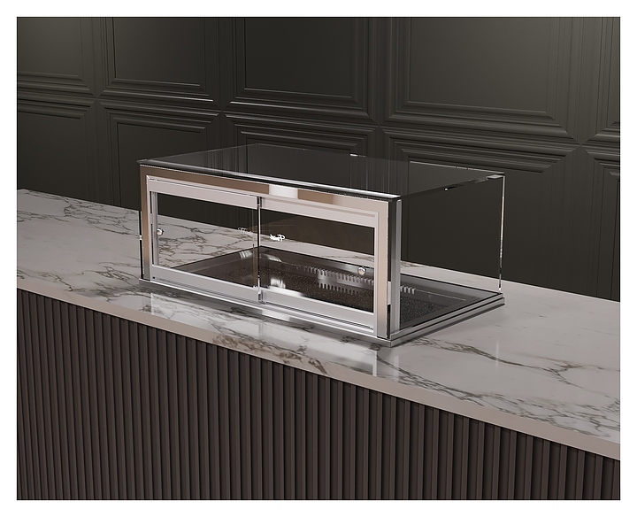 Встраиваемая кондитерская витрина Finist Glassier58 Stone Gst-10/7/3 предназначена для кратковременного хранения и предпродажной демонстрации десертов и кондитерских изделий на предприятиях общественного питания и торговли. Модель может монтироваться в столешницу из любого материала, что позволяет легко интегрировать в интерьер. Витрина оснащена светодиодной подсветкой и дверцей-купе. Каркас выполнен из зеркальной нержавеющей стали, купол - из стекла, зона выкладки - из искусственного камня, который отличается прочностью, долговечностью, гигиеничностью, легко очищается и не впитывает запахи. Особенности: