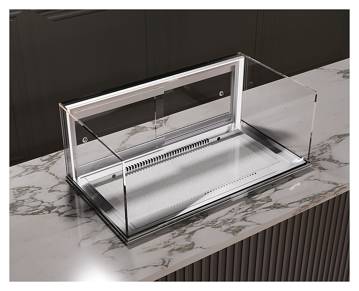 Встраиваемая кондитерская витрина Finist Glassier58 Stone Gst-15/6/3 предназначена для кратковременного хранения и предпродажной демонстрации десертов и кондитерских изделий на предприятиях общественного питания и торговли. Модель может монтироваться в столешницу из любого материала, что позволяет легко интегрировать в интерьер. Витрина оснащена светодиодной подсветкой и дверцей-купе. Каркас выполнен из зеркальной нержавеющей стали, купол - из стекла, зона выкладки - из искусственного камня, который отличается прочностью, долговечностью, гигиеничностью, легко очищается и не впитывает запахи. Особенности: