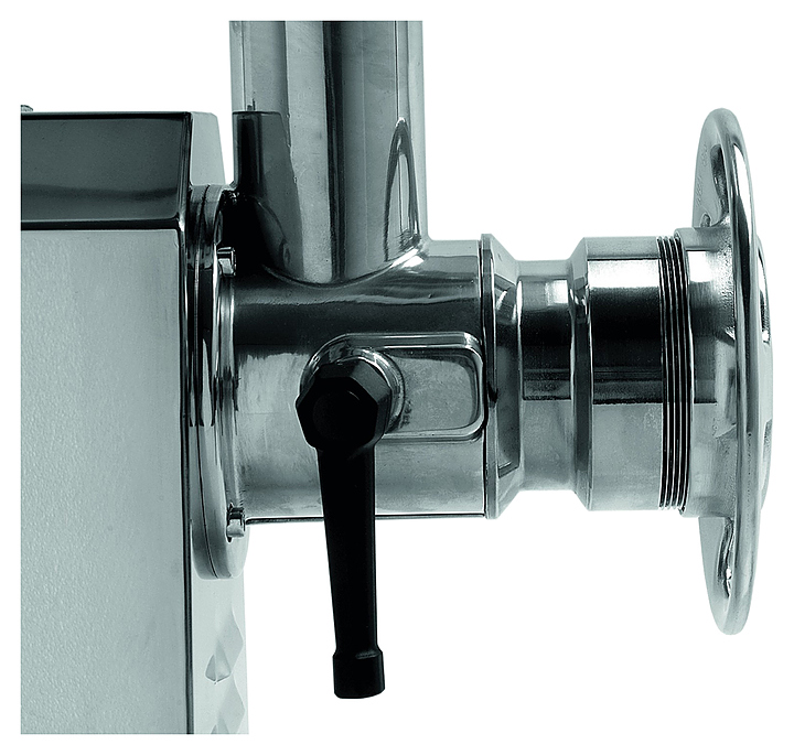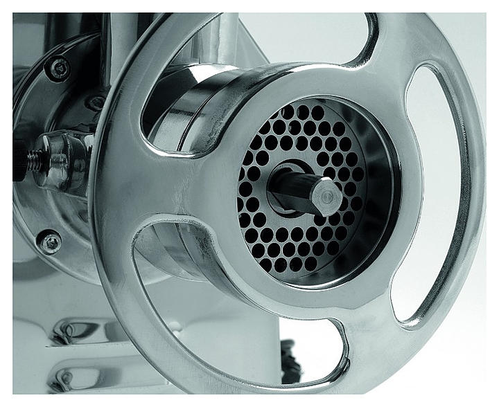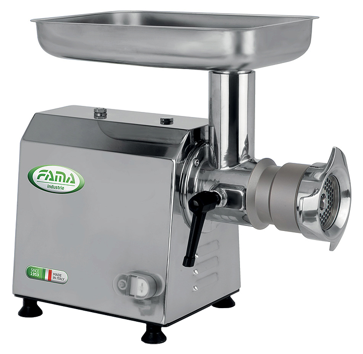 Мясорубка Fama TI 22 FTS 116UE предназначена для измельчения мяса и рыбы на фарш, повторного измельчения котлетной массы и набивки колбас на предприятиях общественного питания и торговли. Корпус выполнен из полированной нержавеющей стали, самозатачивающиеся ножи, лоток и загрузочная воронка - из нержавеющей стали, шестерни, погруженные в масло - из закаленной стали, толкатель - из ABS-пластика. В комплект поставки входят пластиковый толкатель, лоток для подачи мяса и приемный лоток. Особенности: