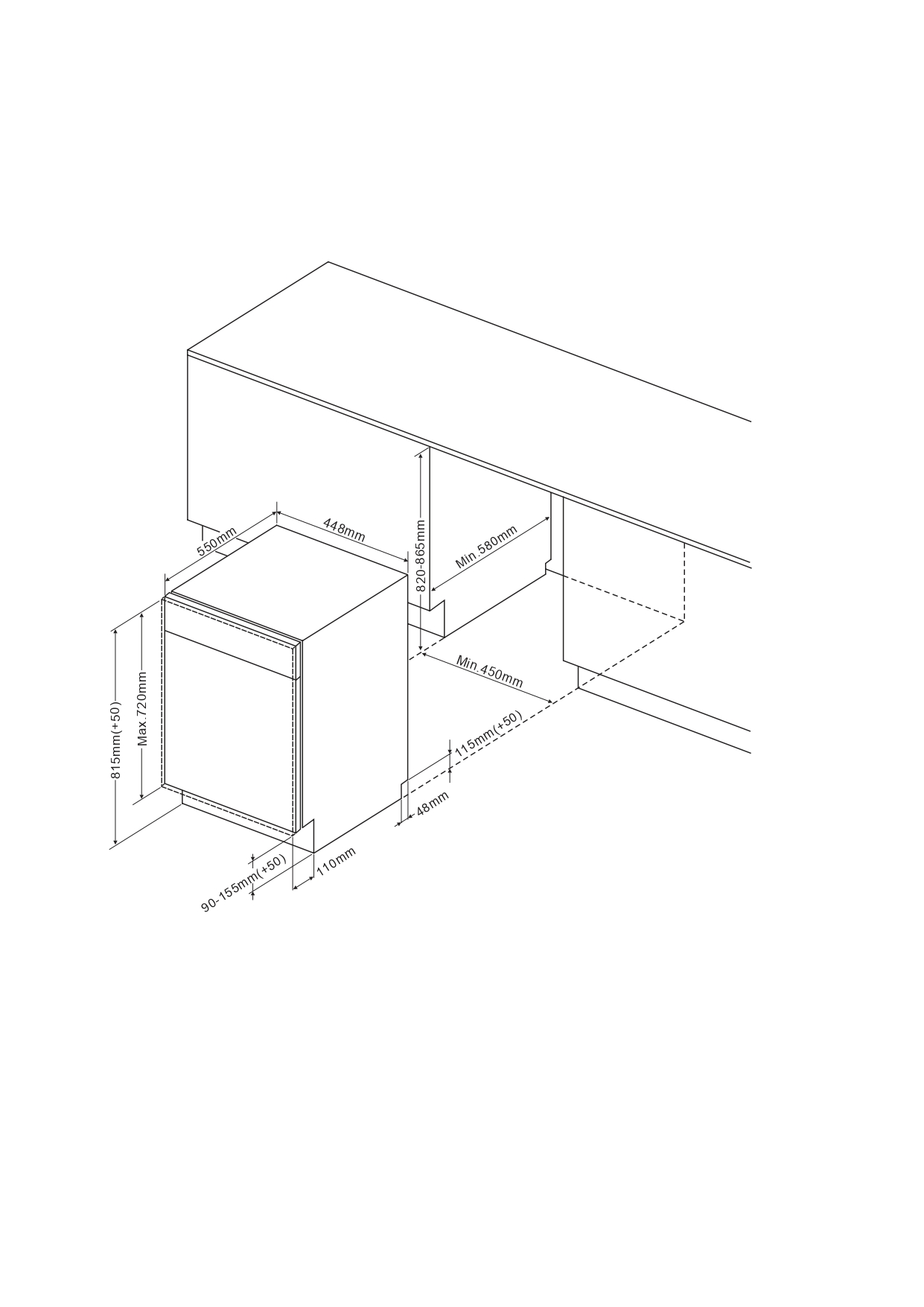 Глубина с открытой под прямым углом дверью: 1150 мм