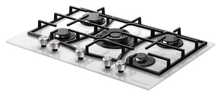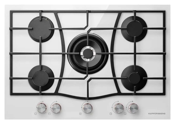 Газовая варочная панель Kuppersberg FG 77 W предназначена для приготовления большого ассортимента блюд в домашних условиях. Модель оснащена 5 высококачественными конфорками SABAF различной мощности, решеткой, кабелем питания и расположенной в центре фронта панелью управления с 5 поворотными переключателями. Рабочая поверхность выполнена из прочного термостойкого закаленного стекла белого цвета, решетка – из чугуна с черной поверхностью, фурнитура с серебристой поверхностью. В комплект поставки входят жиклеры под сжиженный газ, инструкция по эксплуатации и гарантийный талон. Особенности: