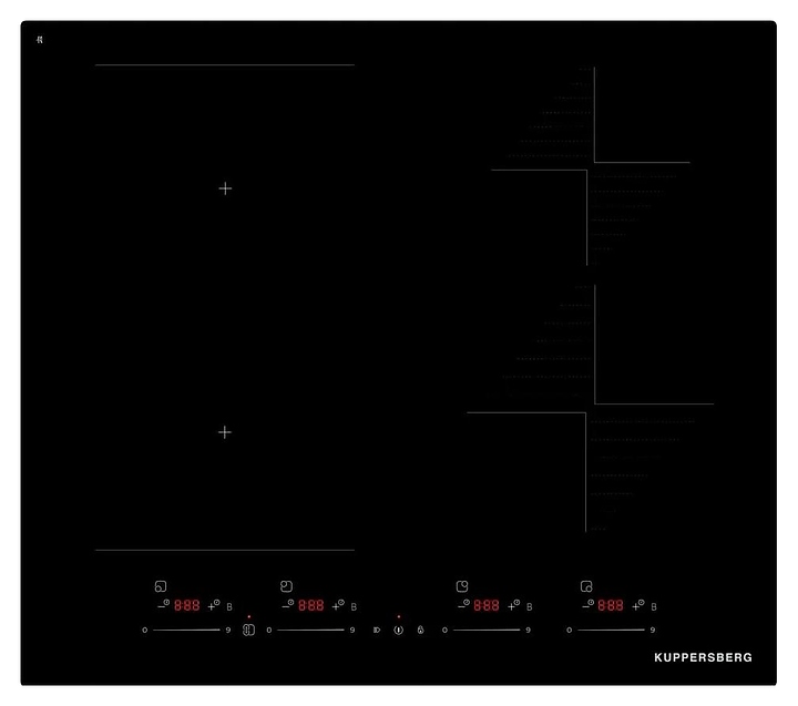 Индукционная варочная панель Kuppersberg ICI 616 предназначена для приготовления большого ассортимента блюд в домашних условиях. Принцип работы основан на непосредственном нагреве металлической посуды создаваемыми высокочастотным магнитным полем индуцированными вихревыми токами. Модель оснащена кабелем питания, 4 варочными зонами различной мощности, сенсорной панелью управления и 5 светодиодными цифровыми дисплеями с красной подсветкой индикации. Рабочая поверхность выполнена из высококачественной стеклокерамики KANGER черного цвета с прямой кромкой и белой сериографией. В комплект поставки входят набор монтажных соединений, инструкция по эксплуатации и гарантийный талон. Особенности:
