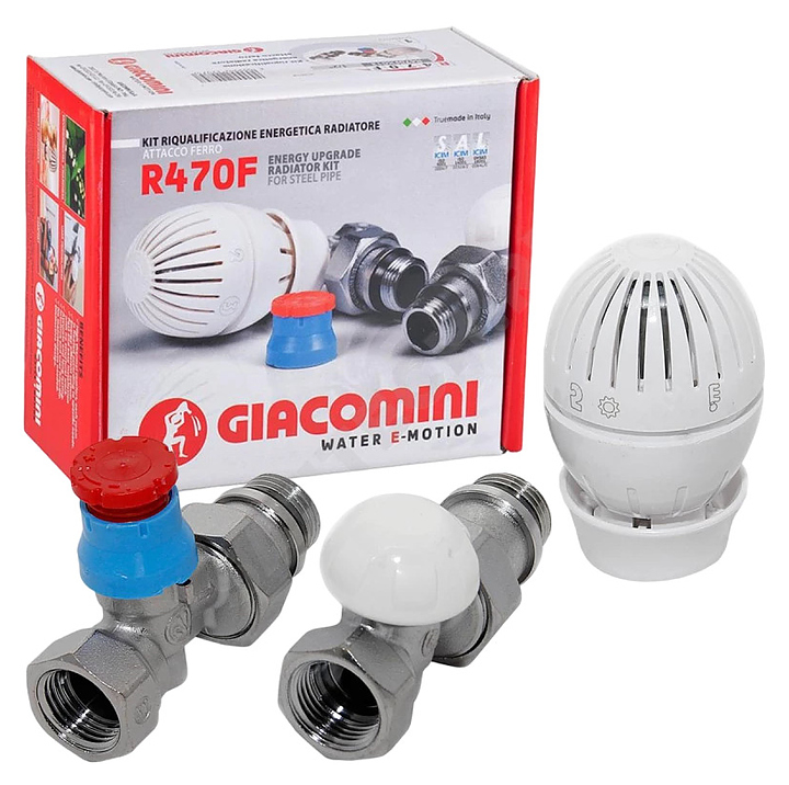 Термостатический комплект Giacomini R470F предназначен для подсоединения радиатора к системе отопления и индивидуального автоматического регулирования подачи теплоносителя в радиатор с целью поддержания температуры в помещении на заданном уровне и экономии энергии. Изделие выполнено из латуни с хромированным покрытием. Комплектация: