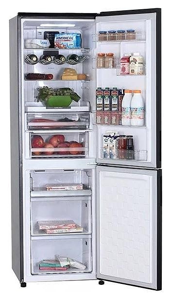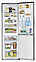 Наполнение холодильной камеры: 3 полки (2 регулируемые по высоте), полка для бутылок, 2 ящика для овощей.
