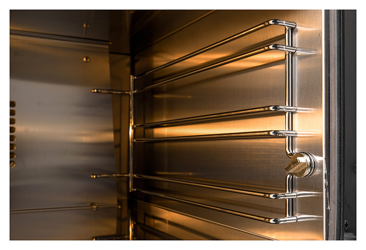 Конвекционная печь Spidocook Caldobake SF013 предназначена для выпекания или разогрева кондитерских и хлебобулочных изделий, готовых блюд, замороженных или предварительно выдержанных в расстоечном шкафу заготовок из теста в кафе, кондитерских, перкарнях и на других предприятиях общественного питания и торговли. Модель оснащена электромеханической системой управления, светодиодным индикатором, эргономичной ручкой, силиконовой полимерной прокладкой и нескользящими ножками. Камера выполнена из нержавеющей стали AISI 304, направляющие и ручка - из нержавеющей стали. Особенности: