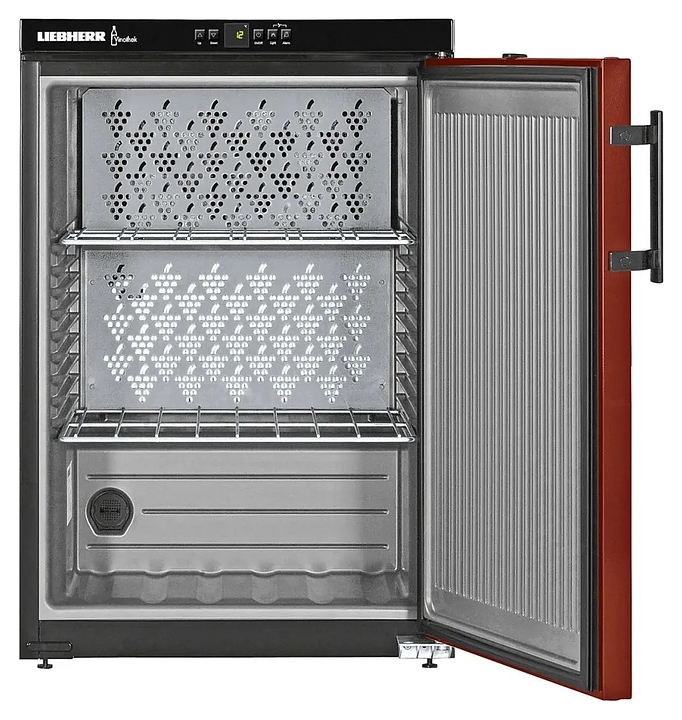 Винный шкаф Liebherr WKr 1811 предназначен для охлаждения и хранения при оптимальных условиях бутилированного вина различных сортов в барах, ресторанах, специализированных магазинах, подсобных складских помещениях, а также домашних условиях. Модель оснащена холодильной камерой с правосторонней распашной дверью дизайна HardLine на перенавешиваемых петлях с короткой вертикальной рукояткой, кабелем питания с евровилкой и расположенной в верхней части фронта панелью управления с функциональными нажимными клавишами и светодиодным цифровым дисплеем. Боковины выполнены из стали с антикоррозийным покрытием черного цвета, дверь – из стали с покрытием бордово-красного оттенка, полки – из металла с хромированной поверхностью, упаковка – из гофрокартона, полимерной пленки и полистирола. В комплект поставки входят 2 решетчатые полки, инструкция по эксплуатации, гарантийный талон и заводская упаковка. Особенности: