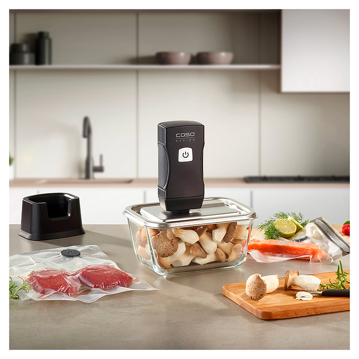 Вакууматор CASO Vacu OneTouch Pro используется в частных домах, квартирах, отелях и офисах для упаковки в вакуум мяса, рыбы, овощей, фруктов и домашних заготовок в пакетах для увеличения срока хранения. Модель оснащена литий-ионным аккумулятором, который отличается долговечностью. Корпус выполнен из пластика. В комплект поставки входит станция для зарядки USB-С. Особенности: