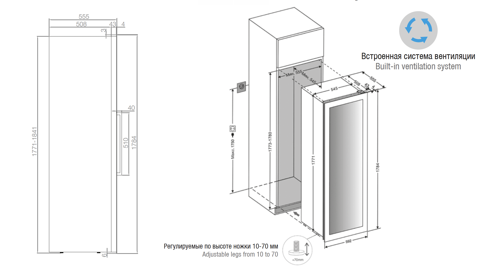 • Минимальные габариты ниши для встраивания: 555х545х1773 мм
