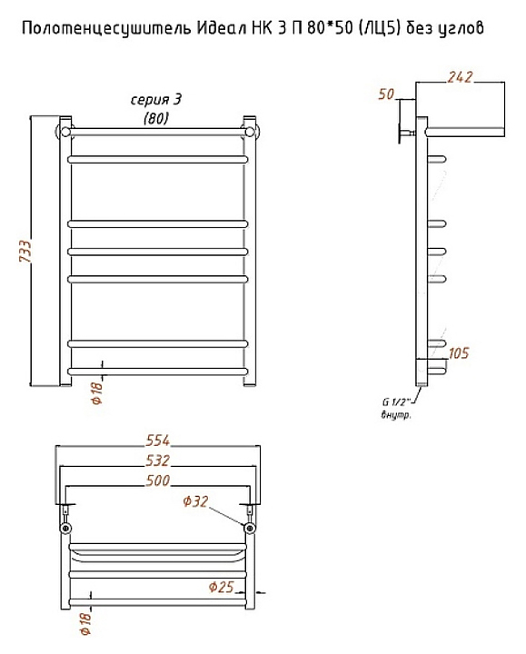 Водяной полотенцесушитель Тругор Идеал НК 3 П 80х50 см предназначен для подогрева и сушки полотенец, а также для обогрева ванных комнат в квартирах, коттеджах и частных домах. Изделие выполнено из нержавеющей стали, отличающейся прочностью, долговечностью и устойчивостью к коррозии. В комплект поставки входят полотенцесушитель и комплект для подключения "НК" без углов. Комплект вентилей или углов для подключения приобретается отдельно в комплект поставки не входит и приобретается отдельно. Особенности: