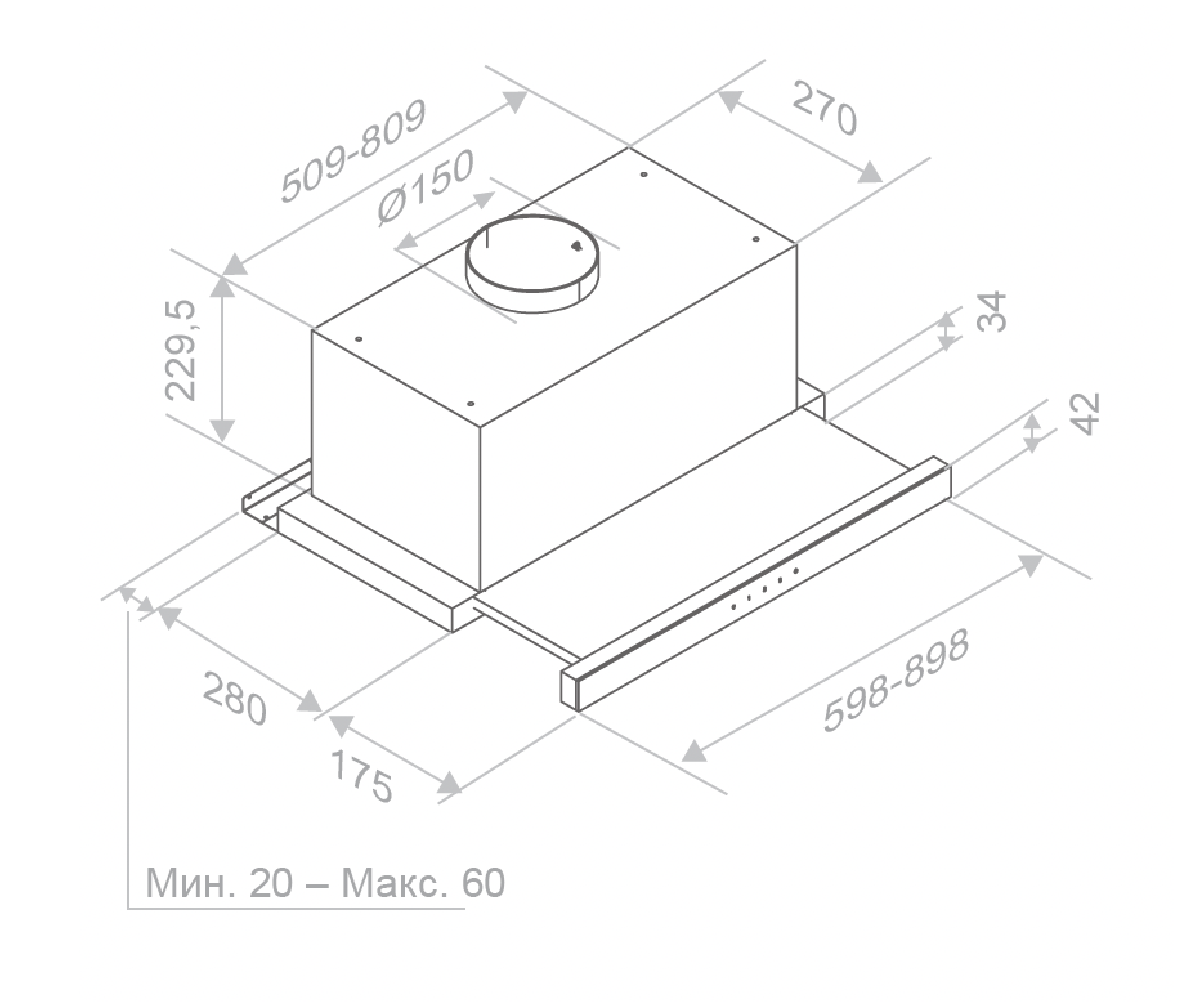 Вытяжка кухонная Pando IES/90 IX V.850 SEC FIX 230/50