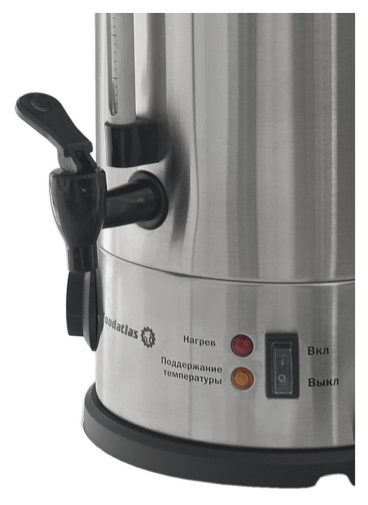 Электрокипятильник Foodatlas WB-DW10L используется на предприятиях общественного питания и торговли для нагрева воды и последующего поддержания заданной температуры. Двойные стенки обеспечивают высокую теплоизоляцию, сохраняют воду горячей дольше, обеспечивают безопасность, предотвращая перегрев наружной поверхности. Модель оснащена краном для розлива и крышкой с рукояткой. Корпус выполнен из высококачественной нержавеющей стали, отличающейся прочностью, долговечностью и устойчивостью к коррозии. Особенности: