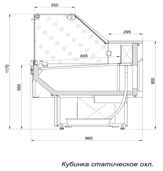 Холодильная витрина Премьер КУБИНКА-1,3 используется на предприятиях общественного питания и торговли для кратковременного хранения и предпродажной демонстрации различных гастрономических товаров. Модель оснащена подставкой с фронтальной термовыводящей решеткой и внешней полкой со стороны продавца. Корпус выполнен из оцинкованной стали с глянцевым антикоррозийным покрытием порошковой эмалью в серых тонах (RAL 7016 и 9006), экспозиционная поверхность и столешница – из шлифованной нержавеющей стали, корпус светильника и держатель фронтального стекла – из анодированного алюминия, ночные шторки – из оргстекла, теплоизоляция – из пенополиуретана. Комплектация: