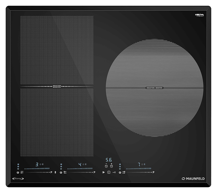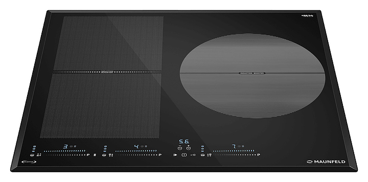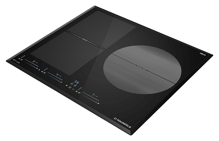 Индукционная варочная панель Maunfeld CVI593SFBK LUX Inverter предназначена для приготовления большого ассортимента блюд в домашних условиях. Принцип работы основан на непосредственном нагреве металлической посуды создаваемыми высокочастотным магнитным полем индуцированными вихревыми токами. Модель оснащена 3 варочными зонами различной мощности, кабелем питания, сенсорной панелью управления и 4 светодиодными цифровыми дисплеями с голубой подсветкой индикации. Рабочая поверхность выполнена из высококачественной износостойкой стеклокерамики ILVA Glass (Италия) черного цвета с фацетированной кромкой.