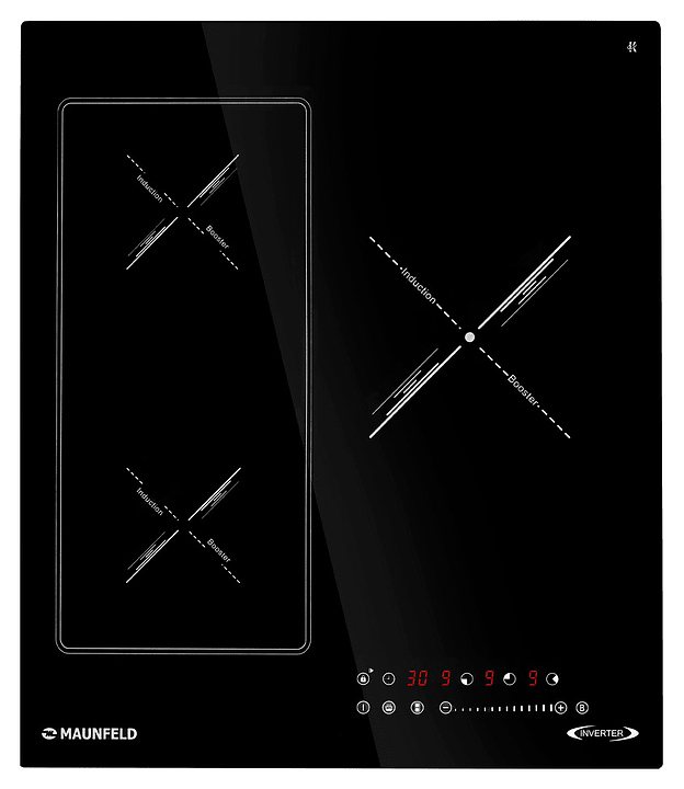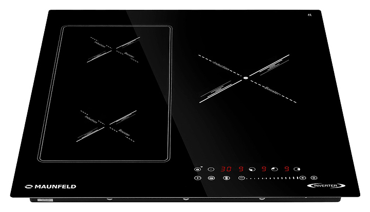 Индукционная варочная панель Maunfeld CVI453SBBKA Inverter предназначена для приготовления большого ассортимента блюд в домашних условиях. Принцип работы основан на непосредственном нагреве металлической посуды создаваемыми высокочастотным магнитным полем индуцированными вихревыми токами. Модель оснащена 3 варочными зонами различной мощности, кабелем питания, сенсорной панелью управления и 4 светодиодными цифровыми дисплеями с красной подсветкой индикации. Рабочая поверхность выполнена из высококачественной износостойкой стеклокерамики черного цвета.