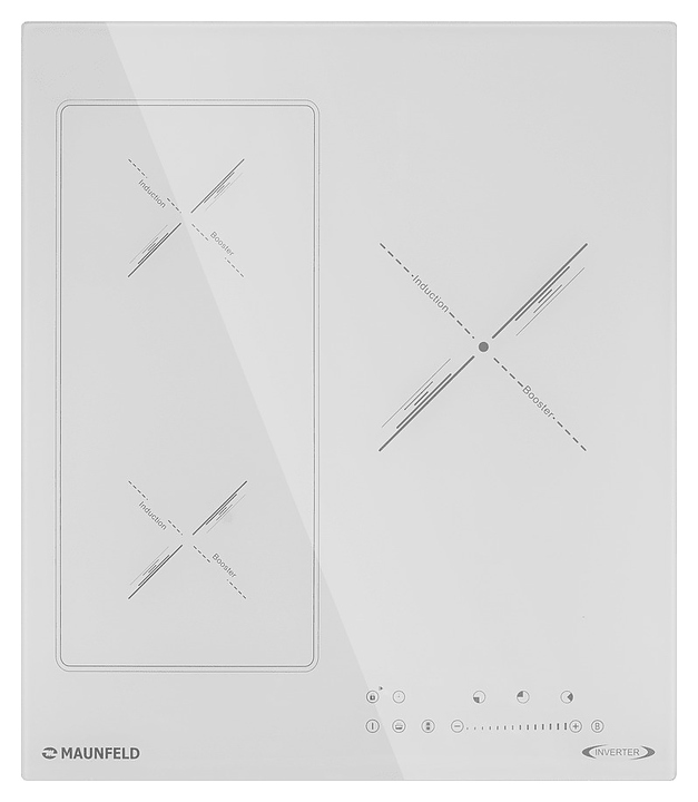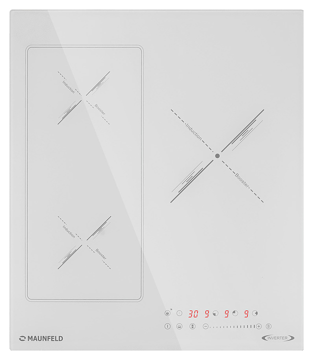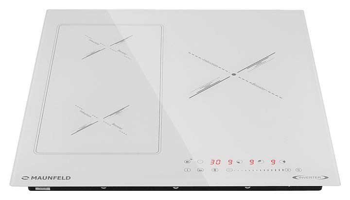 Индукционная варочная панель Maunfeld CVI453SBWHA Inverter предназначена для приготовления большого ассортимента блюд в домашних условиях. Принцип работы основан на непосредственном нагреве металлической посуды создаваемыми высокочастотным магнитным полем индуцированными вихревыми токами. Модель оснащена 3 варочными зонами различной мощности, кабелем питания, сенсорной панелью управления и 4 светодиодными цифровыми дисплеями с красной подсветкой индикации. Рабочая поверхность выполнена из высококачественной износостойкой стеклокерамики белого цвета.