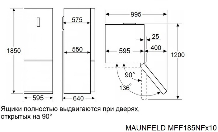 Холодильник Maunfeld MFF185NFB Inverter предназначен для охлаждения, замораживания, кратковременного и длительного хранения пищевых продуктов и напитков в гостиничных комплексах, офисах, а также домашних условиях. Модель оснащена холодильной камерой сверху, морозильной камерой снизу, правосторонними перенавешиваемыми распашными дверьми, кабелем питания с евровилкой и расположенной на верхней двери сенсорной панелью управления с 2 цифровыми дисплеями. Фасад выполнен из стали с покрытием черного цвета и полным остеклением закаленным стеклом без винтового крепежа, боковины – из стали с антикоррозийным покрытием в цвет фасада, внутренняя облицовка камер – из белого антибактериального пластика, плоские полки – из прозрачного закаленного стекла, навесные полки – из прозрачного пластика, ящики – из белого пластика с прозрачным фронтом, ящики и полки декорированы окантовками серебристого оттенка, упаковка – из гофрокартона, полимерной пленки и полистирола.