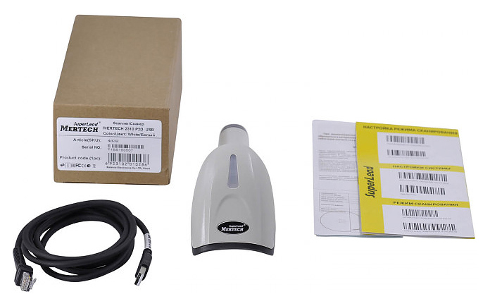 Сканер штрих-кода Mertech 2310 P2D SUPERLEAD USB White 3m cable