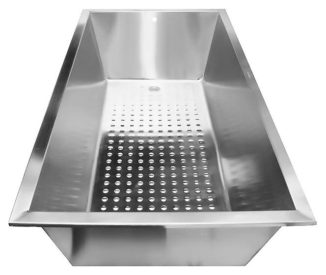 Моечная ванна Oceanus 11-001.1 предназначена для мытья различного инвентаря и других технических нужд на предприятиях общественного питания и торговли. Модель прямоугольного сечения оснащена расширенными бортами с выступающей кромкой и рельефным дном. Изделие выполнено из высококачественной нержавеющей стали марки AISI 304 серебристого оттенка с матовой поверхностью. Особенности:
