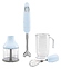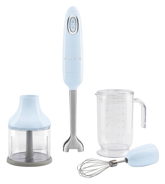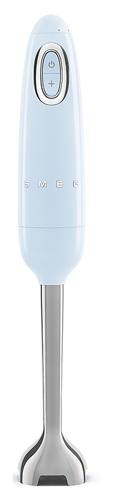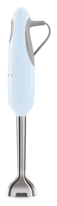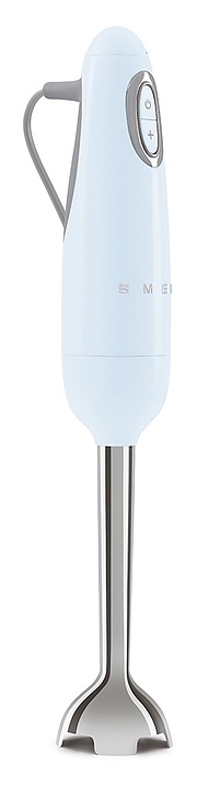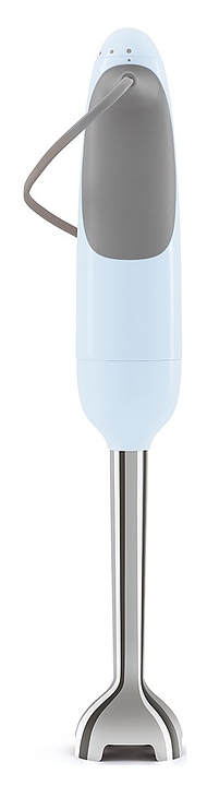 Блендер Smeg HBF03PBEU предназначен для взбивания жидкого теста, кремов и коктейлей, измельчения фруктов, овощей, орехов и трав и приготовления супов-пюре в частных домах и квартирах. Модель выполнена в стиле 50-х годов. Устройство оснащено селектором скорости и эргономичной нескользящей ручкой. Корпус выполнен из пластика, ручка - из пластика Soft Touch, погружная часть и ножи- из нержавеющей стали. Комплектация: