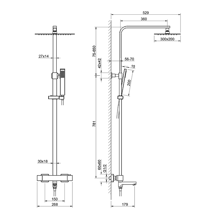Душевая система TIMO Tetra-thermo SX-0169/18 предназначена для использования в ванных помещениях. Модель оснащена изливом для наполнения ванны, прямоугольным верхним тропическим душем, душевой стойкой, душевым гарнитуром, включающим в себя ручной душ, душевой шланг и держатель для ручного душа. Термостатический картридж обеспечивает поддержание необходимой температуры в независимости от давления воды. Изделие выполнено из высококачественной латуни, отличающейся прочностью, долговечностью и устойчивостью к перепадам температур. В комплект поставки входят смеситель, излив, верхний душ, душевая стойка, шланговое подключение, держатель для ручной лейки, ручной душ и душевой шланг. Особенности: